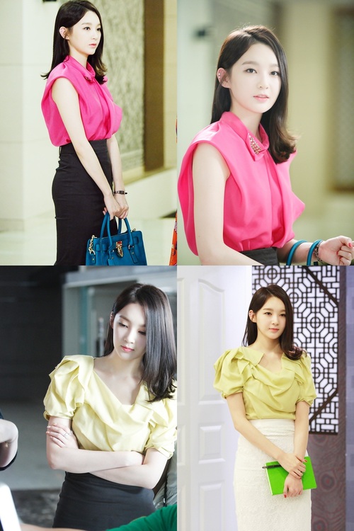극중 도도하지만 귀여운 악녀 캐릭터로 변신한 강민경은 비서 역할답게 깔끔한 정장 스커트로 스타일링을 했지만 톡톡 튀면서 개성 있는 역할에 맞춰 캔디 컬러나 비비드 컬러의 상의를 매치해 패셔니스타로서의 면모를 잃지 않으면서도 여성미 넘치는 ‘황주희 룩’을 선보이고 있는 것.