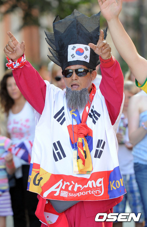 [OSEN=카디프(영국), 올림픽공동취재단] 11일(한국시간) 새벽 영국 카디프의 밀레니엄 스타디움에서 열리는 '숙적' 일본과 2012런던올림픽 남자축구 3~4위 경기 시작 전 팬들이 길거리 응원을 펼치고 있다.