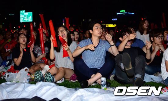 대한민국 올림픽 축구대표팀의 '2012 런던올림픽' 남자 축구 3-4위전 일본과의 경기가 벌어진 11일 새벽 서울시청 앞 광장에 모인 축구팬들이 박주영의 헤딩이 빗나가자 아쉬워하고 있다.