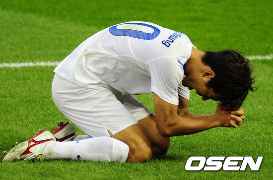 [OSEN=카디프(영국),올림픽공동취재단] 11일(한국시간) 새벽 영국 카디프의 밀레니엄 스타디움에서 열리는 '숙적' 일본과 2012런던올림픽 남자축구 3~4위전 경기 전반 박주영이 선취골을 넣고 환호하고 있다 .