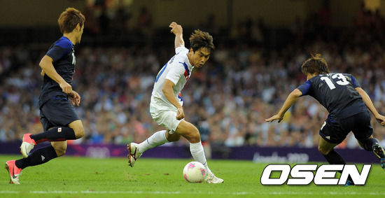 [OSEN=카디프(영국), 올림픽공동취재단] 11일(한국시간) 새벽 영국 카디프의 밀레니엄 스타디움에서 열린 '숙적' 일본과 2012 런던올림픽 남자축구 3~4위 경기 전반 박주영이 문전돌파를 시도하고 있다.