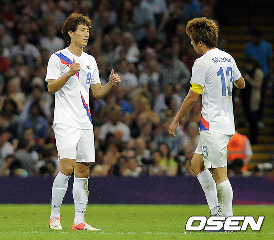 [OSEN=카디프(영국), 올림픽공동취재단] 11일(한국시간) 새벽 영국 카디프의 밀레니엄 스타디움에서 열린 '숙적' 일본과 2012 런던올림픽 남자축구 3~4위 경기 후반 구자철이 골을 넣은 후 지동원과 기뻐하고 있다.