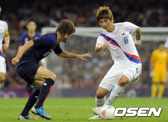 [OSEN=카디프(영국), 올림픽공동취재단] 11일(한국시간) 새벽 영국 카디프의 밀레니엄 스타디움에서 열린 '숙적' 일본과 2012런던올림픽 남자축구 3~4위 경기 후반 기성용이 볼을 다루고 있다.