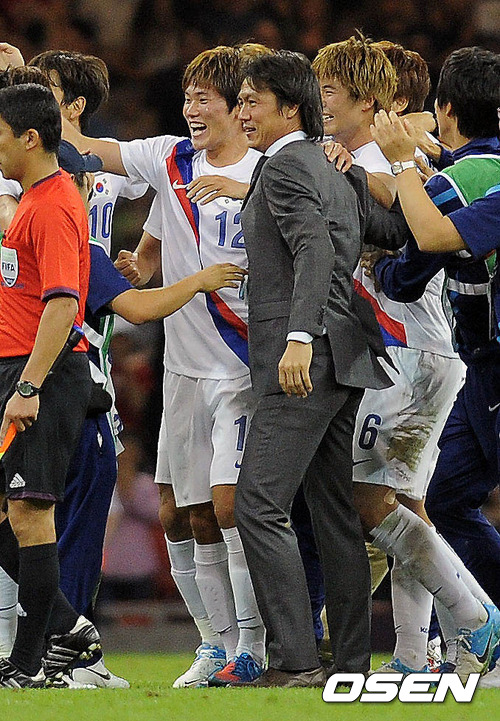 [OSEN=카디프(영국), 올림픽공동취재단] 11일(한국시간) 새벽 영국 카디프의 밀레니엄 스타디움에서 열린 '숙적' 일본과 2012런던올림픽 남자축구 3~4위 경기 종료 후 홍명보 감독이 기뻐하고 있다.