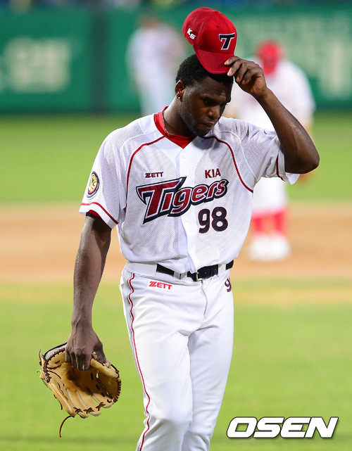 11일 오후 광주구장에서 열린 '2012 팔도 프로야구' KIA 타이거즈와 롯데 자이언츠의 경기 7회초 2사, 소사가 마운드를 내려오고 있다. 한기주로 교체.