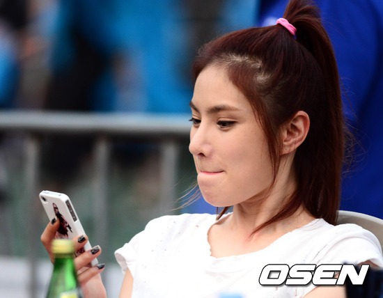 11일 오후 잠실종합운동장 보조경기장에서 열린 싸이 여름 브래드 콘서트 '흠뻑쇼'에서 가수 거미가 객석에서 콘서트를 기다리고 있다.