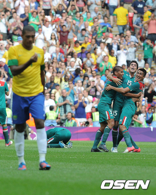 [OSEN=런던(영국), 올림픽공동취재단] 멕시코는 12일(한국시간) 영국 런던 웸블리 스타디움에서 열린 2012 런던올림픽 남자 축구 결승전 브라질과 경기에서 올리브 페랄타의 2골에 힘입어 브라질을 2-1로 꺾고 금메달을 목에 거는 기쁨을 누렸다.
