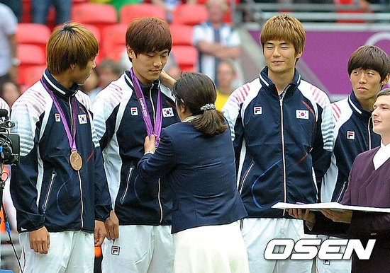 [OSEN=런던(영국), 올림픽공동취재단] 홍명보 감독이 이끄는 올림픽 축구 대표팀이 12일(이하 한국시간) 영국 런던 웸블리 스타디움에서 열린 시상식에서 동메달을 목에 걸었다.