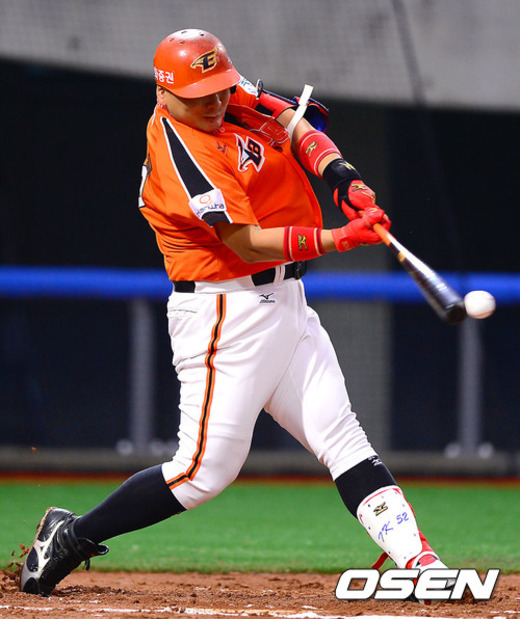 14일 오후 포항구장에서 열린 2012 팔도 프로야구 삼성 라이온즈와 한화 이글스의 경기 1회초 2사 2루 한화 김태균이 선취 1타점 적시타를 날리고 있다.