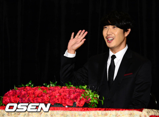 15일 오전 일산MBC드림센터에서 열린 하하 결혼발표 기자회견에서 하하가 초딩팬들에게 인사를 하고 있다.