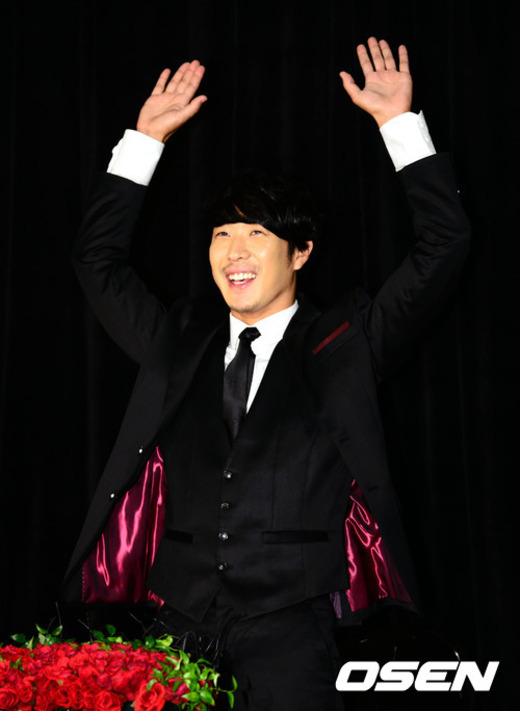 15일 오전 일산MBC드림센터에서 열린 하하 결혼발표 기자회견에서 하하가 만세삼창을 하고 있다.