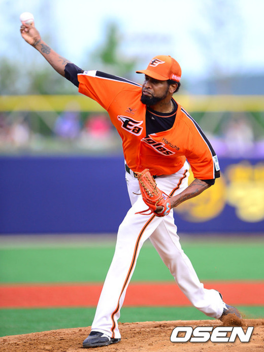 15일 오후 포항구장에서 열린 2012 팔도 프로야구 삼성 라이온즈와 한화 이글스의 경기 1회말 한화 선발투수 바티스타가 역투하고 있다