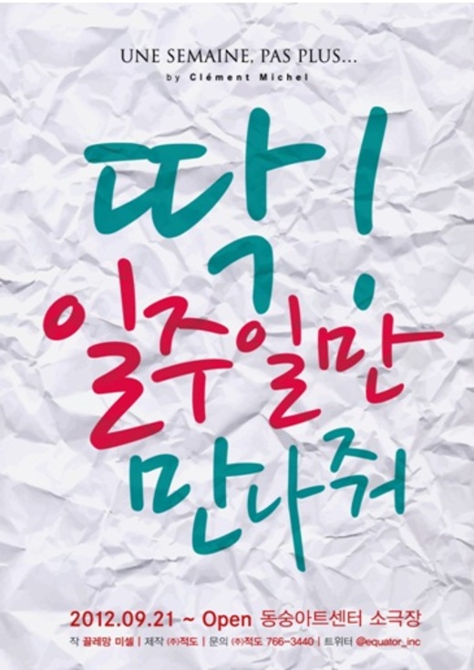 코미디 연극 '딱! 일주일만 만나줘'는 프랑스 공연으로, 이번에 아시아 초연 무대를 갖는다.