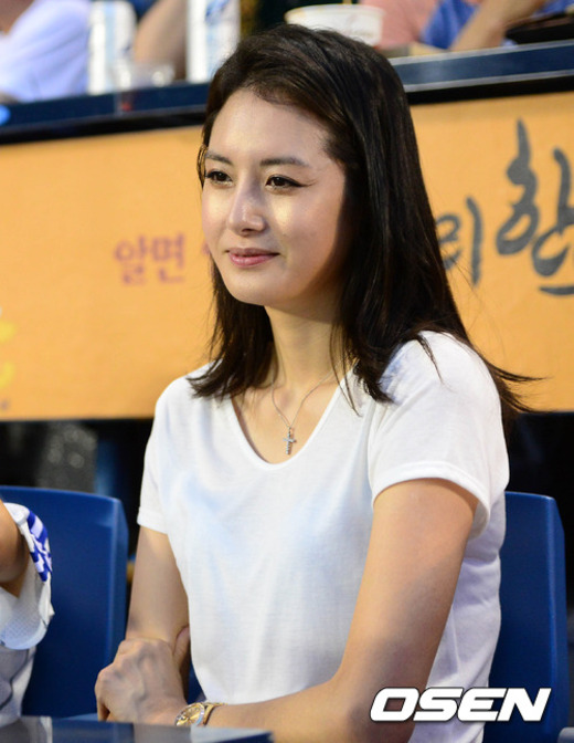 17일 오후 서울 잠실구장에서 열린 '2012 팔도 프로야구' 두산 베어스와 삼성 라이온즈의 경기, 이승엽의 아내 이송정씨가 경기를 관전하고 있다.