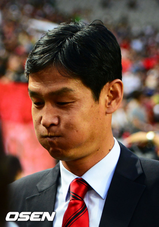 18일 오후 서울월드컵경기장에서 열린 '현대오일뱅크 K리그 2012' 28R FC서울과 수원 삼성의 경기에서 서울 최용수 감독이 긴장한 표정으로 벤치로 향하고 있다.