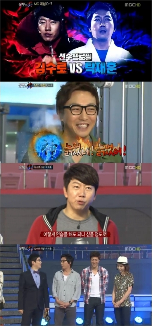 이날 방송에는 김수로와 탁재훈의 대결을 앞두고 연예계에 데뷔한 후 프로필이 소개됐다. 노홍철과 김나영이 소개하는 두 사람의 프로필은 일반적이지는 않았다. 신문협회에서 신문을 많이 읽은 스타에 꼽힌 김수로나 ‘가문’ 시리즈 포함 연기자로서 작품을 11개나 했다는 탁재훈의 굴욕 아닌 굴욕은 본격적인 대결이 펼쳐지기 전부터 웃음을 선사했다.