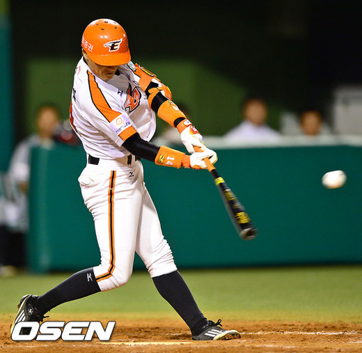 19일 오후 대전구장에서 열린 2012 팔도 프로야구 한화 이글스와 LG 트윈스의 경기 7회말 1사 1,3루 한화 이대수가 역전 1타점 적시타를 날리고 있다.