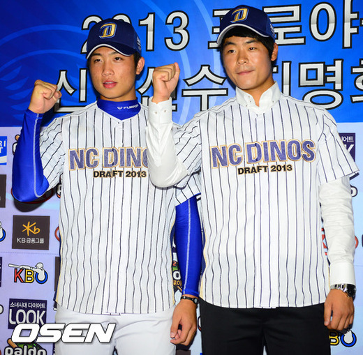 20일 오후 서울 강남구 역삼동 르네상스 서울 호텔에서 2013 프로야구 신인선수 지명회의에서 우선지명을 받은 NC 윤형배, NC 이성민이 포토타임을 갖고 있다.