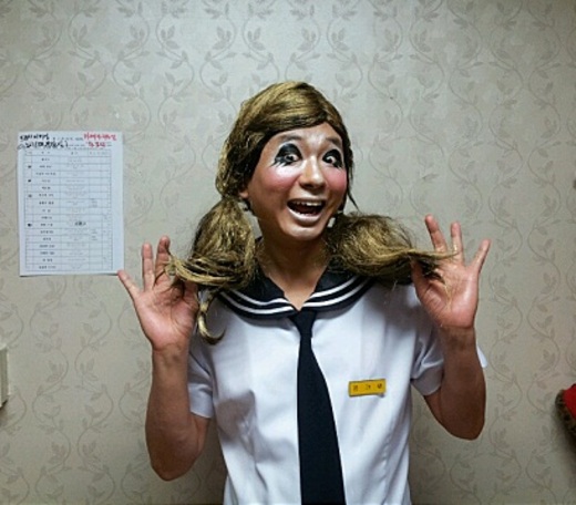 공개된 사진 속에는 박성호가 교복을 입고 머리를 양갈래로 묶은 채 짙은 갸루상 캐릭터 분장을 하고 있다. 눈을 크게 뜨고 입을 벌린 채 귀여운 표정을 짓고 있는 그의 모습은 폭소를 자아냈다.