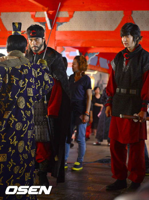 21일 오후 인천 밀라노시티 스튜디오 콤에서 공개된 SBS 월화 드라마 '신의' (연출 김종학) 촬영현장에서 배우 최민수와 이민호가 리허설을 하고 있다.