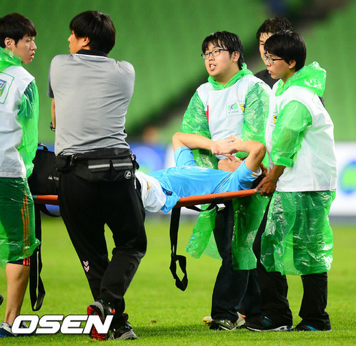 대구 김기희가 부상을 입고 들것에 실려나가고 있다. / rumi@osen.co.kr