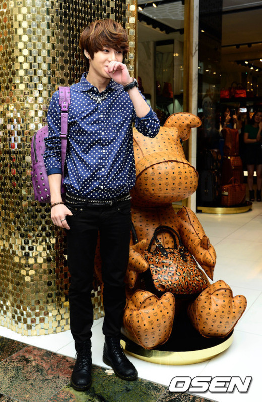 24일 오후 롯데백화점 본점 MCM 매장에서 열린 'MCM 매장 리뉴얼 오픈'행사에 샤이니 멤버 태민이 포토타임을 갖고 있다.