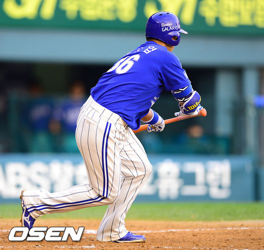 25일 오후 서울 잠실구장에서 열린 '2012 팔도 프로야구' LG 트윈스와 삼성 라이온즈의 경기 5회초 무사 1루 삼성 이승엽이 번트 성공하고 있다.