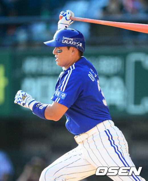26일 오후 서울 잠실구장에서 열린 '2012 팔도 프로야구' LG 트윈스와 삼성 라이온즈의 경기에서 3회초 1사 주자 없는 상황에서 삼성 이승엽이 중견수 앞 2루타를 날리고 있다.