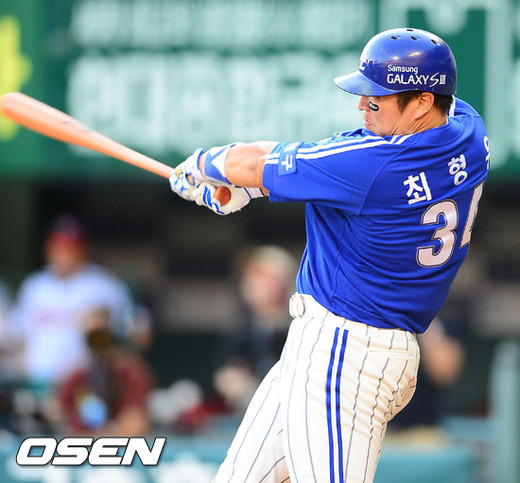 26일 오후 서울 잠실구장에서 열린 '2012 팔도 프로야구' LG 트윈스와 삼성 라이온즈의 경기에서 3회초 1사 주자 1,3루 최형우가 1타점 적시타를 날리고 있다.