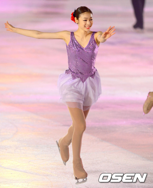 26일 오후 서울 방이동 올림픽공원 체조경기장에서 열린 '삼성 갤럭시SⅢ★스마트에어컨Q 올댓스케이트 서머 2012'에서 김연아가 멋진 무대를 펼치고 있다.