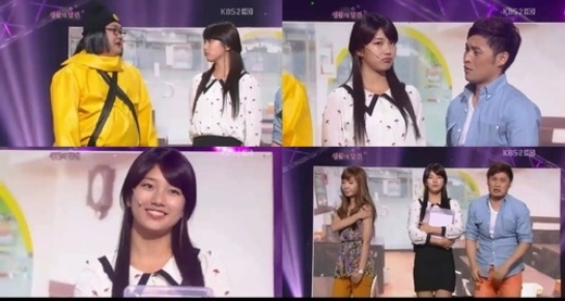 이는 수지가 지난 26일 오후 방송된 '개그콘서트'의 코너 '생활의 발견'에 게스트로 등장해 김준현과 커플 연기를 하며 키스를 하는 포즈를 취하던 중, 개그맨 김기리가 김준현의 머리를 쟁반으로 내리쳐 수지와 입술이 맞닿은 것처럼 보이는 장면에 대한 해명이다.