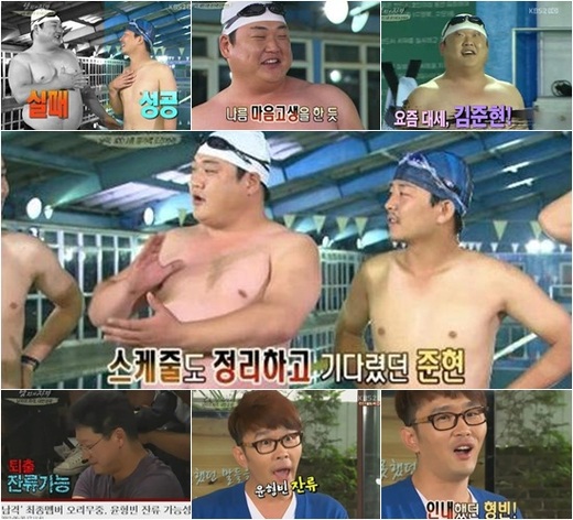 지난주에 이어 '남자, 철인 3종 경기에 도전하라'는 미션을 받고 본격적으로 훈련에 돌입하는 멤버들의 모습이 이날 전파를 탄 가운데, 당초 '남격' 고정 멤버로 거론되던 김준현이 고정멤버와 함께 김준호의 지인으로 오는 9월 말 통영에서 열리는 철인3종 경기 도전에 합류하게 됐던 것.