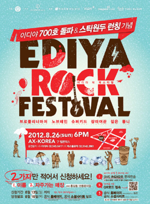 26일 광진구 악스 코리아에서 열린 ‘이디야 록 페스티벌’에서 소비자 2500명을 초청해 브로콜리너마저, 노브레인, 슈퍼키드, 장미여관, 몽니, 짙은 등의 인디 밴드 공연과 함께 참가자 전원에게 신제품 스틱원두커피 비니스트25를 증정했다.