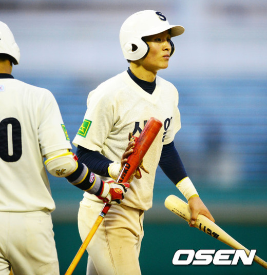27일 오후 수원종합운동장 야구장에서 열린 제 46회 대통령배 전국고교 야구대회 진흥고와 신일고의 결승전에서 3회초 1사 주자 3루 신일고 김나눔의 1타점 적시타때 김영환이 홈을 밟고 있다.