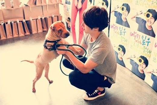 공개된 사진에서 정일우는 쪼그리고 앉아 샤페이 종 강아지를 사랑스럽게 쳐다보고 있다. 강아지의 두 앞발을 붙잡은 채 강아지와 눈을 맞추고 있는 있는 정일우는 회색 티셔츠와 검은색 캐주얼 바지, 스니커즈 운동화를 신은 편안한 모습이다.