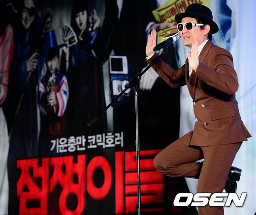 [OSEN = 백승철 기자] 28일 오전 서울 종로구 부암동 AW 컨벤션센터에서 열린 영화 제작보고회에서 노라조가 축하공연을 하고 있다.