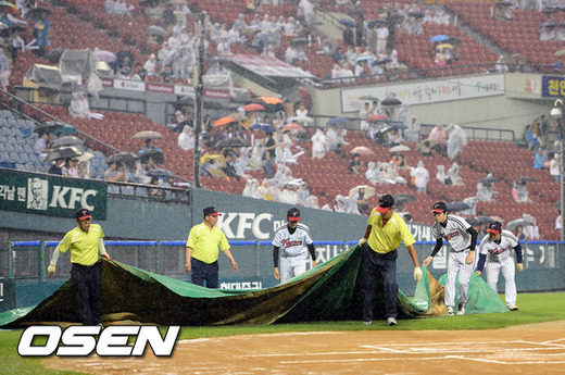 한국야구위원회(KBO)는 28일 잠실-군산-문학 경기 우천 연기를 결정하며 "두산-LG전은 9월 17일 열리게 된다"라고 밝혔다. 한편 군산 KIA-삼성전과 문학 SK-롯데전은 아직 일정 확정 없이 추후로 미루는 것으로 일단 결정했다.