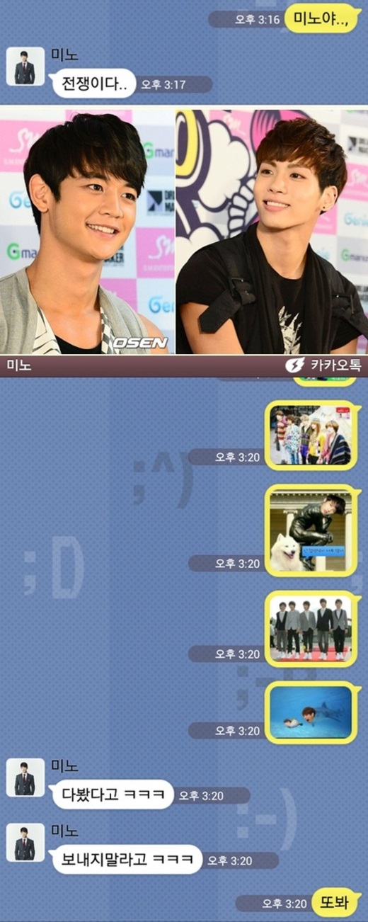 이를 접한 네티즌들은 "종현의 끝없는 민호 디스 웃기다", "둘다 귀엽게 카톡하네" "이제 민호의 반격이 시작되나" 등의 반응을 보였다.