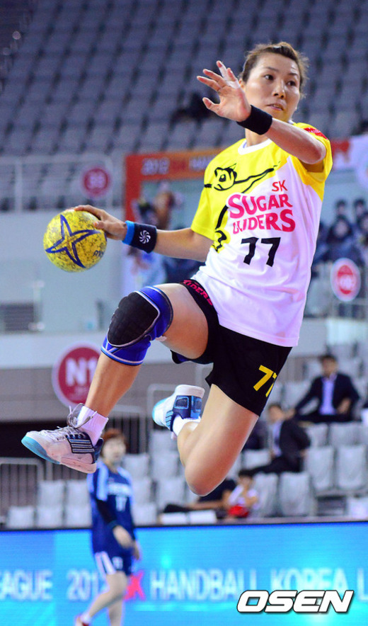 28일 오후 서울 방이동 SK핸드볼경기장에서 열린 '2012 SK핸드볼 코리아리그' 경남개발공사와 SK슈가글라이더즈의 경기, SK 장소희가 점프슛을 시도하고 있다.