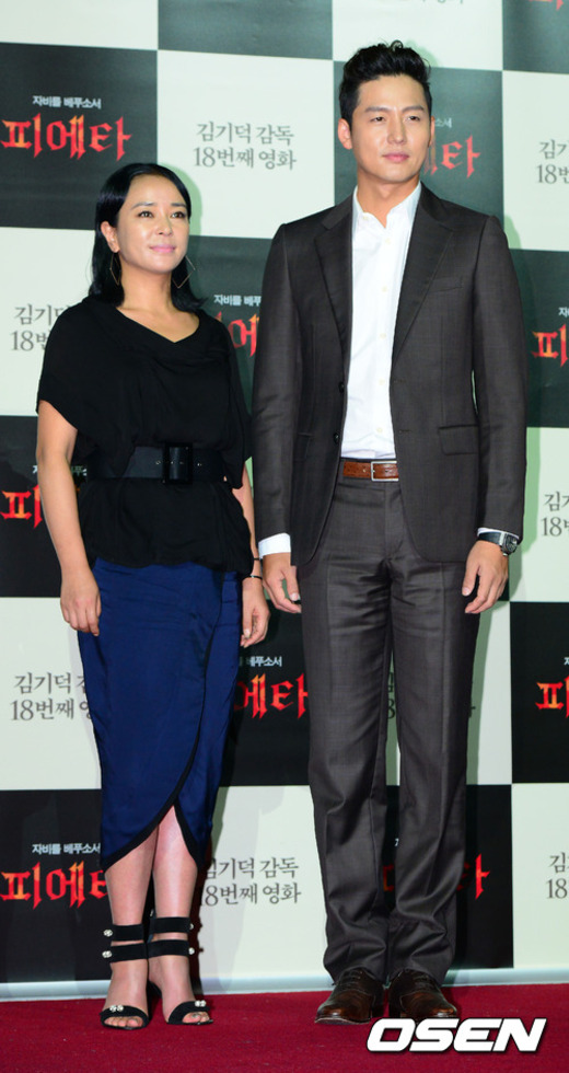 김기덕 감독의 18번째 영화이자 '비몽' 이후 3년만에 정식으로 내놓은 복귀작 '피에타'는 채무자들의 돈을 뜯어내며 살아가는 잔인한 남자 강도(이정진)가 어느날 갑자기 찾아온 엄마라는 여자(조민수)를 만나 겪게 되는 혼란과 점차 드러나는 충격적인 진실을 다룬 작품으로 이정진, 조민수가 주연을 맡았다.