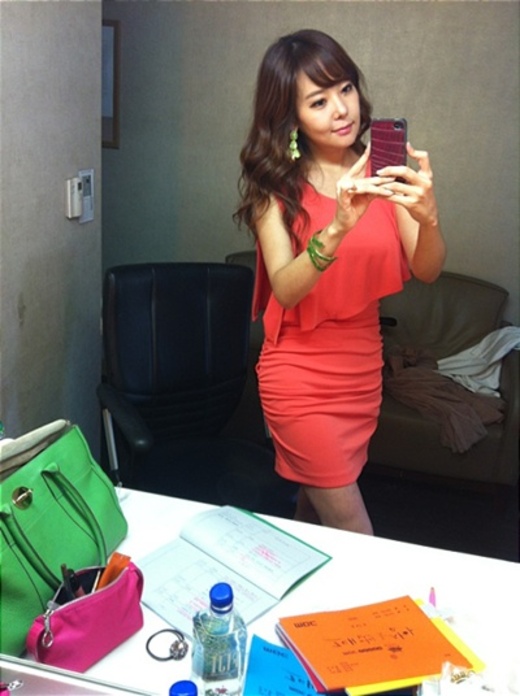 공개된 사진 속에는 소유진이 다홍색의 원피스를 입고 거울에 비친 자신의 모습을 찍고 있다. 몸에 달라붙는 디자인의 원피스 때문에 늘씬한 허리라인과 몸매가 드러났고, 세련된 스타일링을 선보여 눈길을 끌었다.