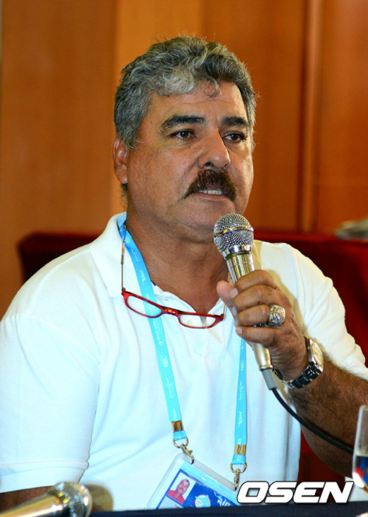29일 오후 서울 청담동 리베라호텔에서 진행된 '제 25회 세계청소년야구대회' 출전국 감독 기자회견에서 베네수엘라 페드로 아빌라 감독이 취재진의 질문에 답변을하고 있다.