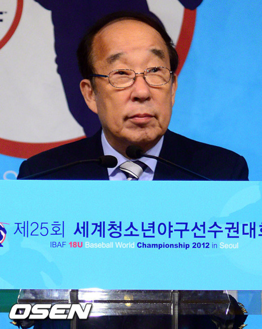 29일 오후 서울 청담동 리베라호텔에서 진행된 '제 25회 세계청소년야구대회' 환영회에서 박용성 KOC 회장이 축사를 하고 있다.