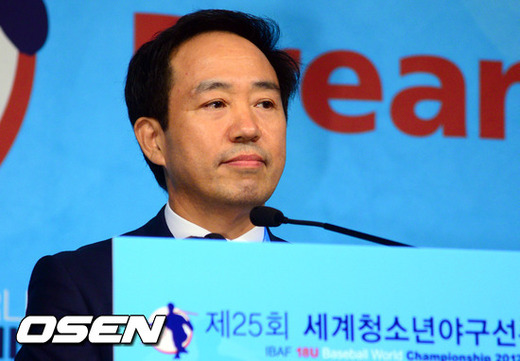 29일 오후 서울 청담동 리베라호텔에서 진행된 '제 25회 세계청소년야구대회' 환영회에서 강승규 대한야구협회장이 환영사를 하고 있다.