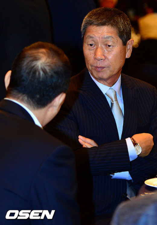29일 오후 서울 청담동 리베라호텔에서 진행된 '제 25회 세계청소년야구대회' 환영회에서 세계청소년야구대회 홍보대사인 김성근 고양원더스 감독이 김인식 위원장과 이야기를 나누고 있다.