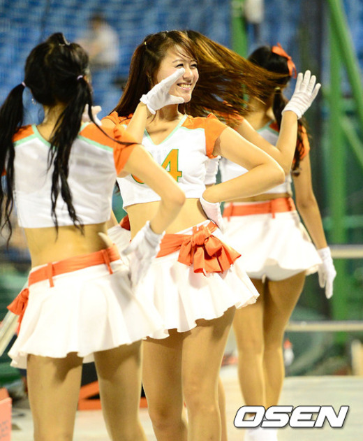 29일 오후 대전 한밭야구장에서 열린 '2012 팔도 프로야구' 한화 이글스와 넥센 히어로즈의 경기, 한화 치어리더가 화려한 공연을 펼치고 있다.