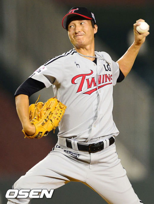 29일 오후 서울 잠실구장에서 열린 '2012 팔도 프로야구' 두산 베어스와 LG 트윈스의 경기에서 8회말 마운드에 오른 이상열이 힘차게 공을 뿌리고 있다.