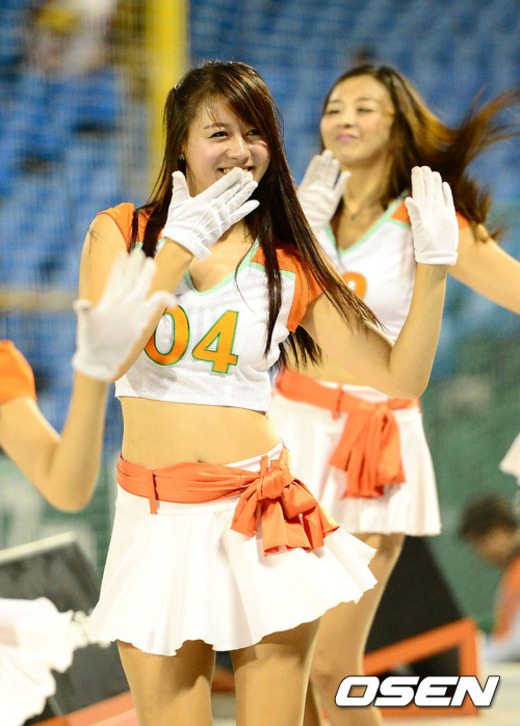 29일 오후 대전 한밭야구장에서 열린 '2012 팔도 프로야구' 한화 이글스와 넥센 히어로즈의 경기, 한화 치어리더가 화려한 공연을 펼치고 있다.
