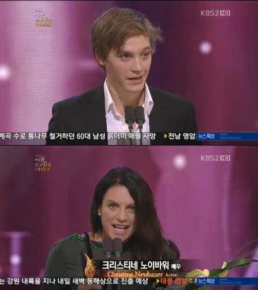 30일 오후 서울 해오름 국립극장에서 열린 '2012 서울 드라마 어워즈'에서 남여연기자상은 각각 독일 홈비디오의 요나스 나이와 '하나스 디시전'의 크리스티네 노이바워가 차지했다.