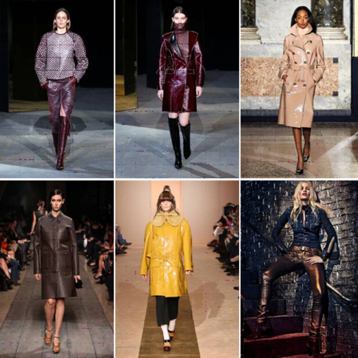 마르니와 에밀리오 푸치는 광택이 도는 페이턴트 가죽 아우터를 선보였다. 빳빳해 보이는 듯 부드러운 느낌이 특징. 마르니는 박시한 둥근 실루엣으로 60년대 복고풍 무드를 현대적으로 재현한 반면, 에밀리오 푸치는 날렵한 실루엣이 파리지엔의 시크함을 보여준다.
